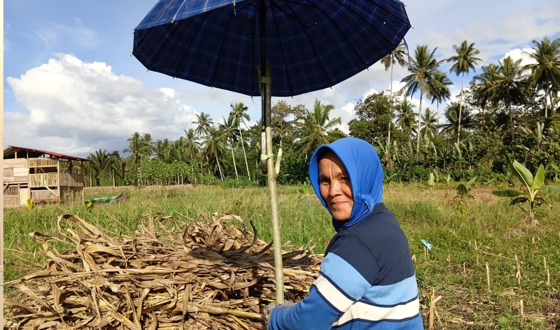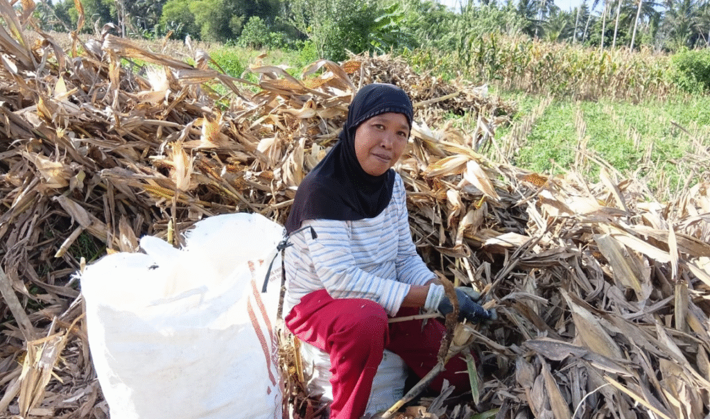 Bersama perempuan lainnya di Desa Kopandakan II Kabupaten Bolaang Mongondow, Atin menghabiskan waktu dari pagi hingga sore di kebun jagung setiap musim panen.