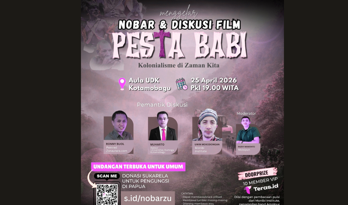TENTANGPUAN.com – Perbincangan tentang Papua terus menemukan ruangnya, termasuk lewat inisiatif-inisiatif diskusi publik yang mencoba menghadirkan sudut pandang berbeda. Salah satunya melalui agenda nonton bareng (nobar) dan diskusi film dokumenter Pesta Babi yang akan digelar di Kotamobagu.